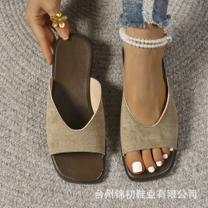 女性用スクエアトゥサンダル、新作カジュアルクロスボーダーローマンフラット2025サンダル、大きいサイズスクエアヒール