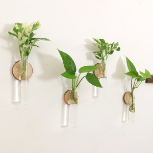創意水培試験管壁面家庭装飾壁掛けガラス植物花瓶壁装飾生け花緑羅ペンダント
