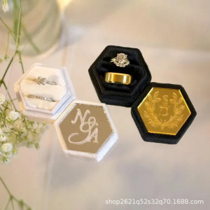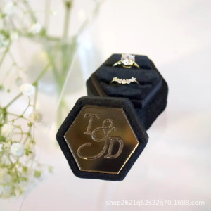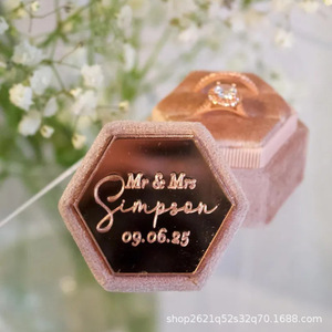 etsy レーザー彫刻カスタムミラーアクリル六角ベルベット布リングボックスプロポーズギフト人格