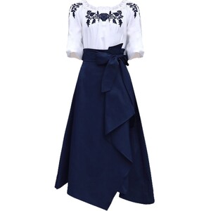 純綿ツーピーススカート刺繍レディライクセレブスタイルワンショルダーサマーニューウエスト不規則ミドル丈スカート