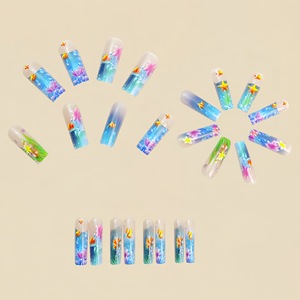 ロングタイプのヨーロッパの四角いネイルシールの青い海洋スタイルの氷透感の小さい醜い魚の図案の偽の爪のシールのヨーロッパ