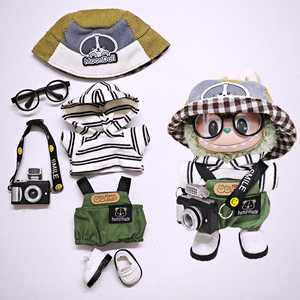 子犬用帽子、オーバーオール、カメラ、靴、黒メガネの6点セット【カメラはデフォルトで音と光/電源が入っています。電源が入っていない場合はメッセージを残してください】