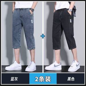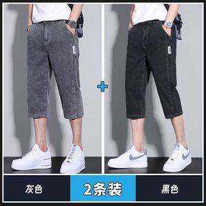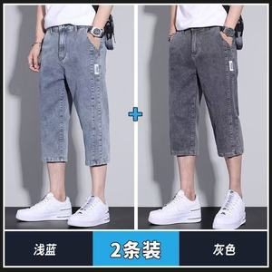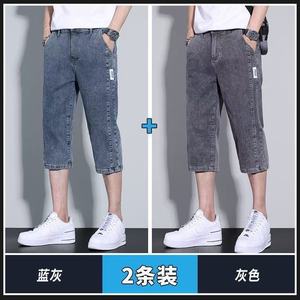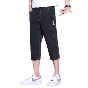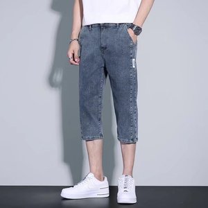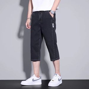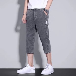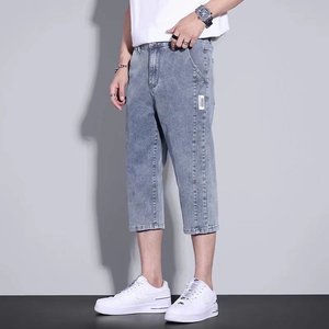 メンズサマーショート丈デニムショートパンツ、薄手でゆったりとしたストレートレッグのアウターパンツ、夏のトレンドで万能な7点ミドルパンツ