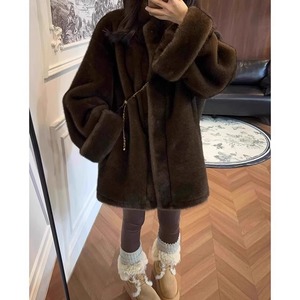 韓国版の中古環境保護ミンクの毛の中の長いタイプの立襟のゆったりしている毛皮の女性の毛のコートの高級感の毛皮の一体冬