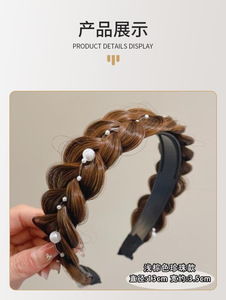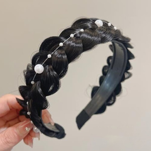 ウィッグパールフィッシュボーン編み込みヘアバンドオールインワン女性用編み込みヘアバンド高頭頂ヘアピンヘッドバンドパールヘアバンド