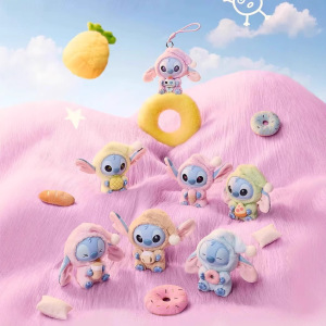 ディズニー スティッチ どんなに眠くても一口食べるシリーズ ビニールぬいぐるみ ブラインドボックス【箱の端を6枚撮ってください】