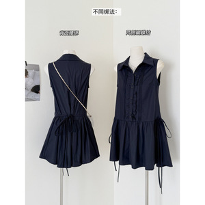 セナ 2025 新しい夏スタイルオールドマネースタイルスリムで白い気質シャツノースリーブドレスノースリーブシャツドレス