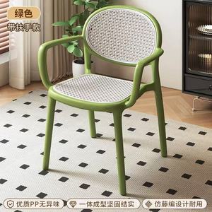 仿藤塑料椅网红化妆靠背椅成人麻将椅户外家用可叠放商用餐椅透气