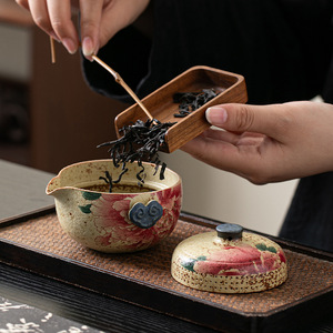 フロストレッドセラミックティーポット、レトロ牡丹家庭用ティーセット、ティーメーカー、ハイエンドシングル小型ハンドポット