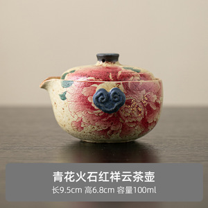 オールドレトロ風 火石赤牡丹 - 香雲ポットとカップ(簡易版)