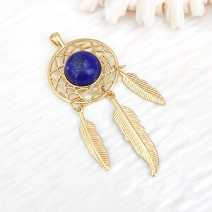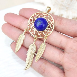 新しい天然水晶ラピスラズリペンダントインディアンドリームキャッチャーハンギングリーフタッセル鎖骨チェーンペンダント