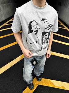 EMEメンズ「退廃天使」プリントソロナ氷感人は落書きのように古い肩の半袖tシャツの上着を作ります。