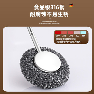 鍋掃除用品 316ステンレス製キッチン専用掃除ブラシ 鍋を傷めず、糸くずが出ない長柄鍋洗いブラシ