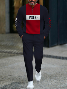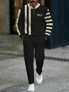 25欧美亚马逊新款半开门襟拉链套头休闲时尚男士长袖长裤套装