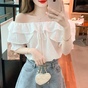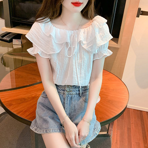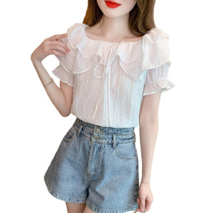 女性のためのフレンチフリルワンショルダートップ 2025 夏の新しいデザイン多用途ニッチ半袖シフォンシャツ女性のための