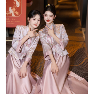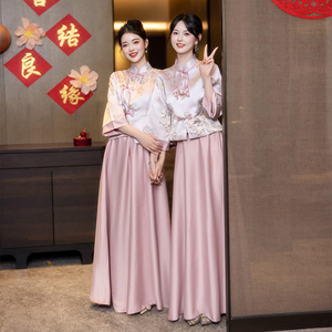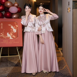 新しい中国風のブライズメイドドレスピンク 2025 新作春夏シスターグループチャイナドレス婚約ドレススカート毎日着用可能で美しい
