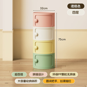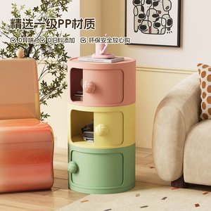 ベッドサイドコンビネーション収納キャビネット女の子カラードーパミンクリーム風物置棚ハンドル付き子供多層収納キャビネット