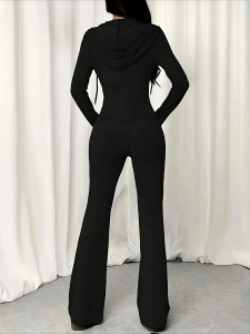 カジュアルスポーツスーツ、スリムフィットフード付き長袖スウェットシャツジャケット、女性用春マイクロフレアストレートパンツ2点セット