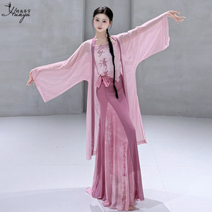 古典的なダンスの服、新しい中国風の妖精のようなエレガントな外側のガーゼの服、中国風のステージ服、女性の練習用パフォーマンス服
