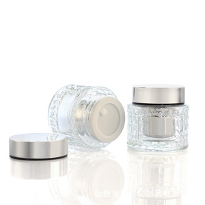 50g ホワイトライナー、二重層シルバー蓋、ガラス