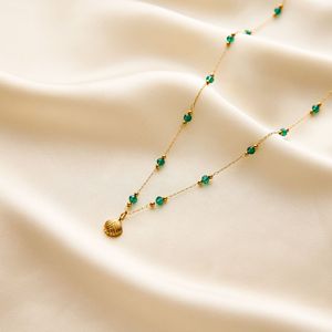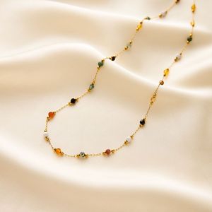 チタン鋼天然石クリップビーズネックレスボヘミアンスタイル 18k ゴールドステンレス鋼ミックスカラー天然石クリップビーズネックレス