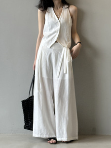 言葉双天糸亜麻袖なしベスト上着82505ワイドパンツ2点セット夏シンプルセット9813