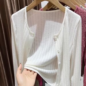 アイスシルクピットストリップショール日焼け止めカーディガン女性の夏のアウターカンパニエエアコンカバーアップショートコートトップ