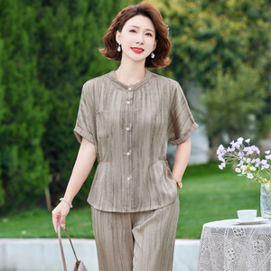 中年ママサマースーツカジュアルでスタイリッシュな2点セット新作中高年夏半袖Tシャツシャツトップス