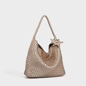 枪枪同款小众设计编织款大容量托特包女新款香槟色单肩腋下包百搭