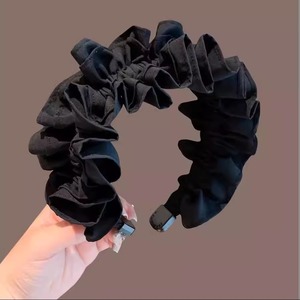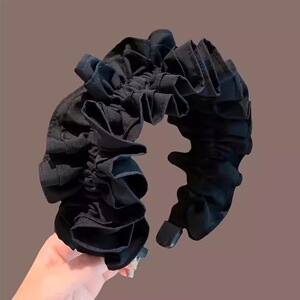 女性用ブラックプリーツヘッドバンド2025新しいスタイルの高頭蓋ヘッドバンドは顔を小さく見せます、幅の広いエッジの気質、ヘアピン、ヘアアクセサリー