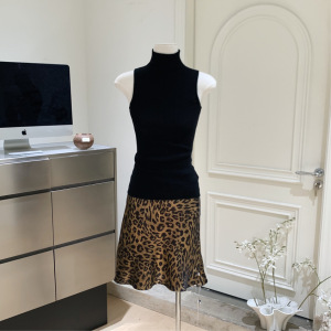レトロな金箔ヒートスタンピングヒョウ柄Aラインハイウエストスカート夏の新作スリムフィットスカート