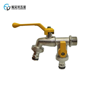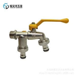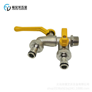 クロスボーダー代発一進二出双柄ダブルコントロール黄色アルミ柄亜鉛合金ノズル蛇口洗濯機ガーデン