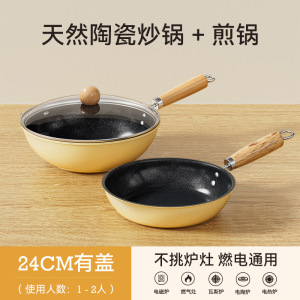一人用セラミック黄色鍋セラミック調理鍋ノンスティック鍋家庭用フライパン鉄鍋ユニバーサルストーブ小型中華鍋
