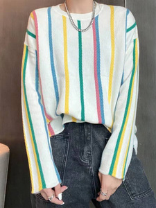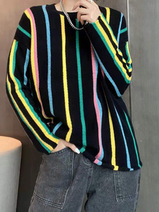 Puyuan セーター工場は、写真とサンプルに基づいてカスタマイズされた女性用ラウンドネック長袖ルーズニットセーターを加工し、衣料品の OEM を提供します。