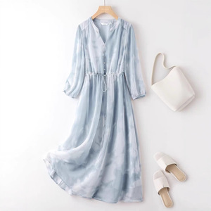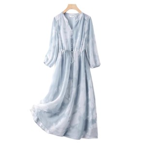 多用途で絶妙なハイエンドシフォンレディースドレス2025夏気質ハイエンドミドル丈スカートスポットクロスボーダー