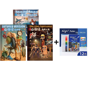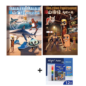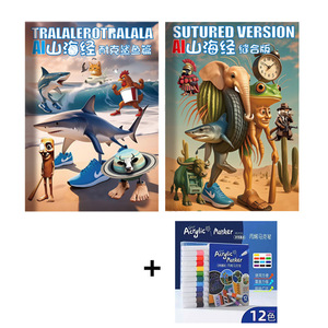 山と海の古典 [木の棒男 + サメ + 縫い合わせバージョン] + 12 色のアクリルマーカー