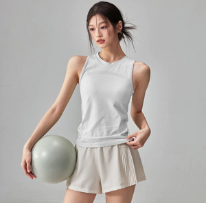 薄手の速乾性ヨガベスト、伸縮性のある痩身ランニングトレーニングアウターノースリーブスポーツトップ夏の屋外ラウンドネック