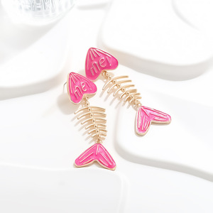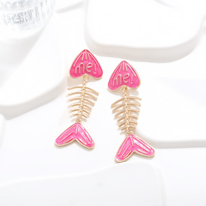 2025 新しい日本と韓国の漫画非対称猫フィッシュボーンイヤリング漫画かわいい甘い動物フィッシュボーンイヤリング