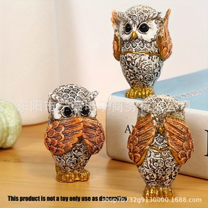 クロスボーダー人気樹脂製フクロウ像3個、さまざまな部屋タイプの装飾工芸品