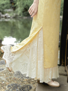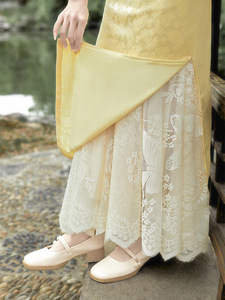 チャイナドレスのインナーレースメッシュスカート、ウエストゴム、レトロで万能なチャイナドレス、ヒップをカバーしてスリムに見せるボトムス