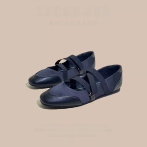 春と秋の浅い口スクエアトゥフラットシューズ女性のための 2025 新しいメリージェーンバレエシューズ弾性バンドシルバーソフトソールシューズ