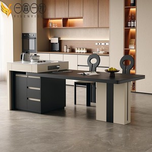 新しいスタイルのスレートアイランドダイニングテーブル一体型無垢材伸縮式ティーテーブル家庭用サイズのモダンな多機能ダイニングテーブルと椅子
