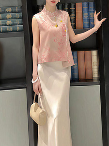 2025 夏の新スタイル中国風ベストベスト女性のための小さなデザインベストトップ + スカート