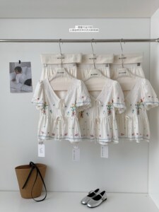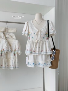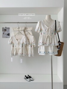 アリススイートドリームヘビークロスステッチコットン感ベビードールシャツ+Aラインスカート美しいサマースーツ