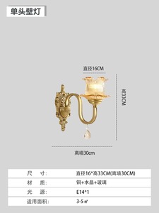 新しいヨーロッパスタイルの全銅製ウォールランプアメリカンリビングルームウォールランプベッドサイドシングルおよびダブルヘッドウォールランプベッドサイドランプ寝室工場直販