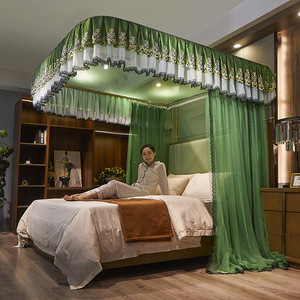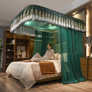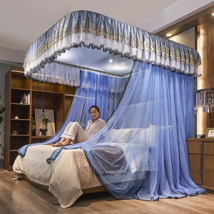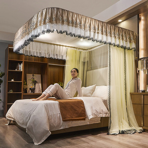 U字型レール伸縮式3ドア蚊帳トラック宮殿床置きプリンセススタイル1.5m/1.8mベッドダブルホーム