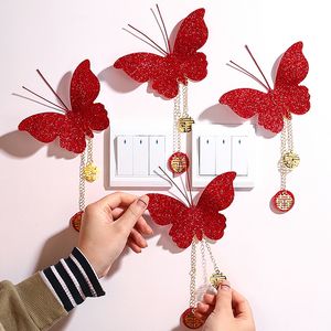 婚房装饰创意浪漫婚礼婚房卧室客厅布置立体金色小蝴蝶喜庆小配件