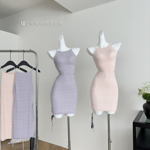 2025年リアルショット中空ウエストストラップベストスカートデザインスリムニットドレス