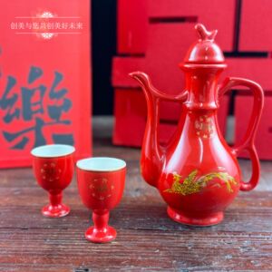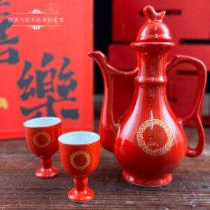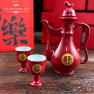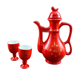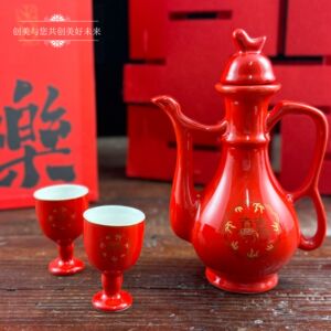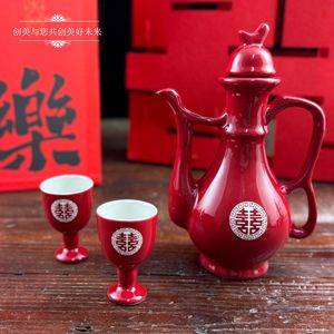結婚式の赤いセラミックトーストボトル中国風のハッピーワードワインボトル結婚式の宴会赤いワインボトルワイングラスセット結婚式の交換カップワイン