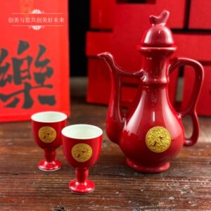 赤釉龍鳳ワインセット 2杯